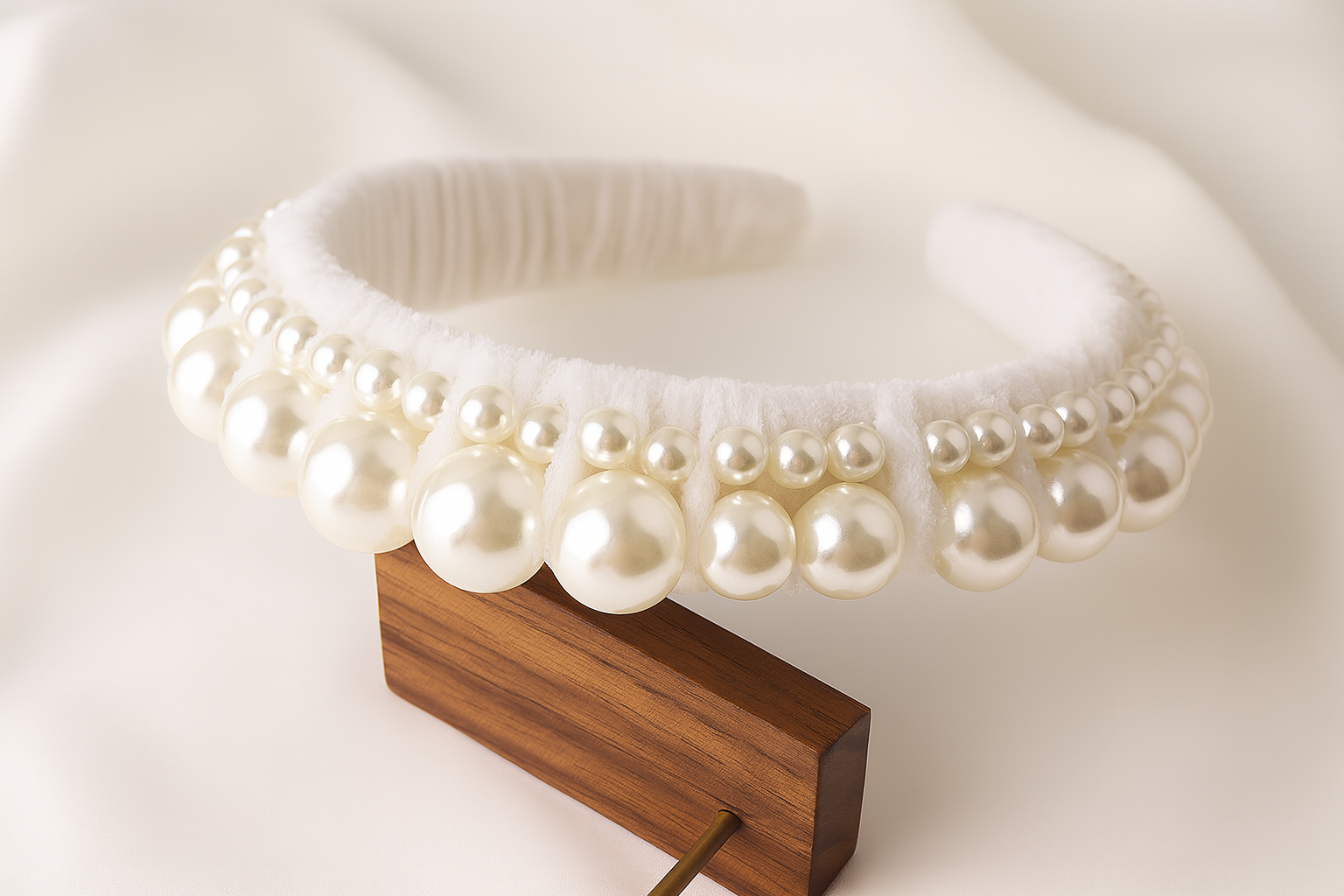 Elegant, regal, and effortlessly timeless, the Pearlette Crowns collection features hand-embellished velvet headbands adorned with cascading faux pearls. Designed for the girl who loves subtle drama and vintage glam, these statement pieces elevate everything from Sunday brunch looks to bridal bliss.